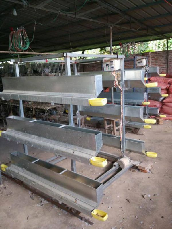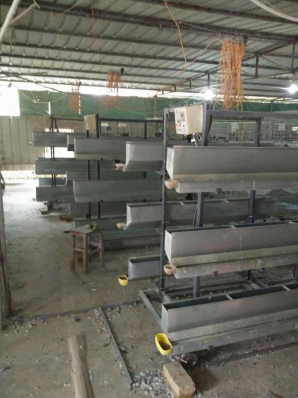 1、育雏笼:笼体总高1.7米左右,笼架脚高10~15厘米,每个单笼的笼长为70~100厘米,笼高30~40厘米,笼深40~50厘米,一般采用3~4层重叠式笼养。网孔一般为长方形或正方形,底网孔径为1.25厘米1.25厘米,侧网与顶网的孔径为2.5X2.5厘米。笼门设在前面,笼门间隙可调范围为2~3厘米,每笼可容雏鸡30只左右。