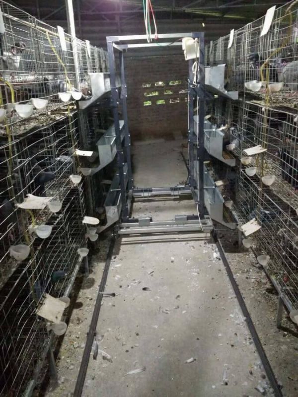 3、蛋鸡笼:每个单笼长40厘米,深45厘米,前高45厘米,后高38厘米,笼底坡度为6°~8°。伸出笼外的集蛋槽为12~16厘米。笼门前开,宽21~24厘米;高40厘米,下缘距底网留出4.5厘米左右的滚蛋空隙。笼底网孔径间距2.2厘米,纬间距6厘米。顶、侧、后网的孔径范围变化较大,一般网孔经间距10~20厘米,纬间距2.5~3厘米,每个单笼可养3~4只鸡,组合形式常见的有阶梯式、半阶梯式和重叠式。